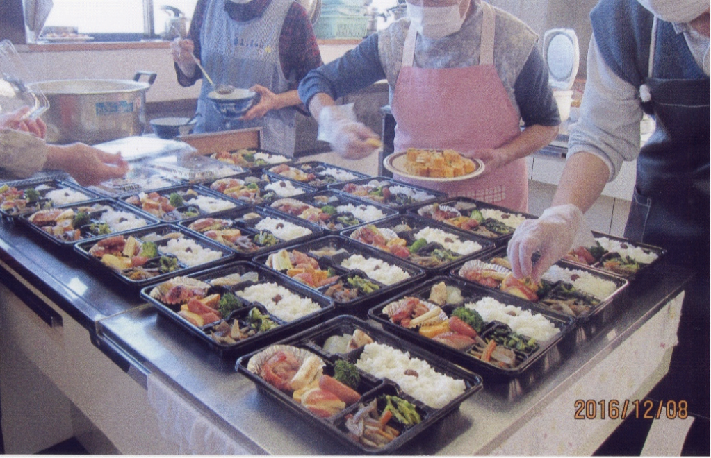 公民館講座「一人暮らしのお年寄りに温かい手料理を!」に参加したメンバーが「かすみ草」を立ち上げ、高齢者、障がい者にお弁当の配食を始めました。