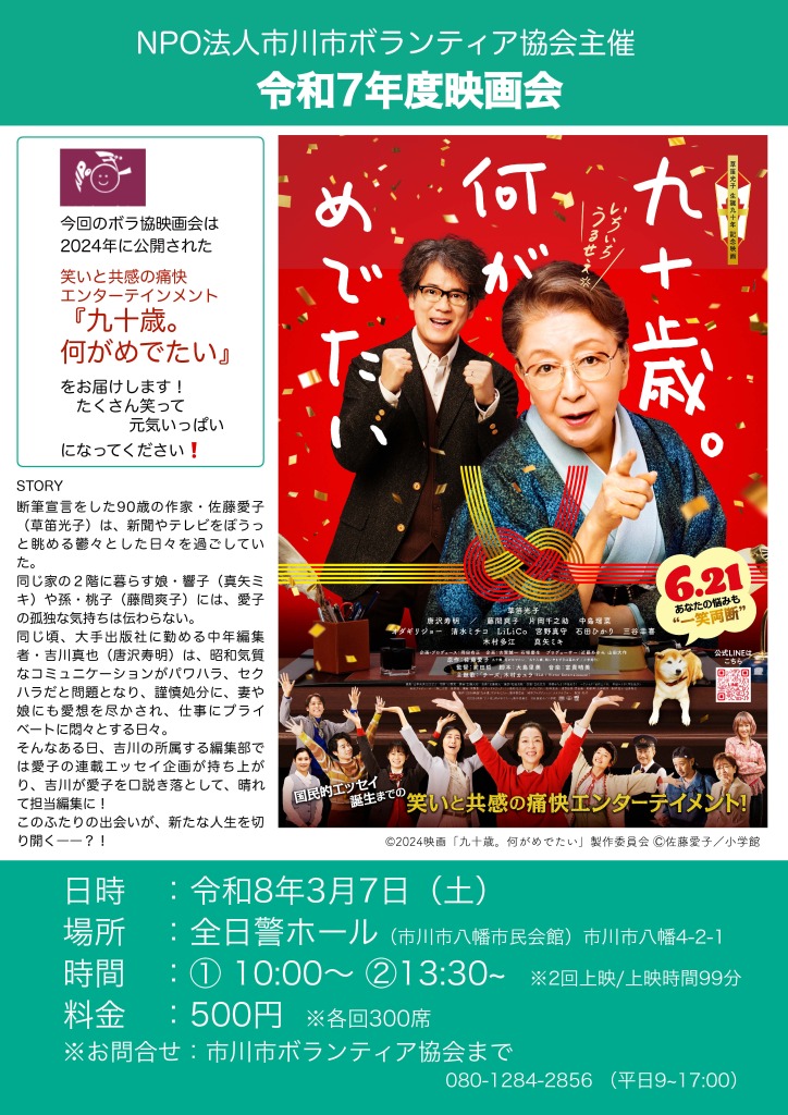 3/7 映画会『九十歳。何がめでたい』開催